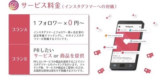 インスタグラマーのフォロワー数×各企業の提供単価でマッチングし、そのインスタグラマーが掲載するプランです。