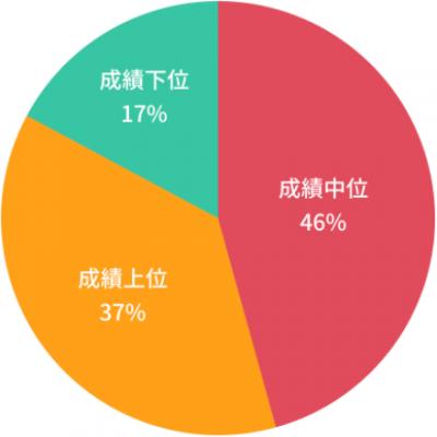 現在、お子さんの成績は塾のクラスでどの位置にあるかという問いに対し、「成績中位」が46%、次いで「成績上位」が37%、「成績下位」が17%となりました。