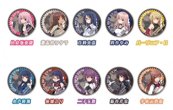 「【アリス・ギア・アイギス】」に登場するアクトレスたちを、約75mmサイズのトレーディング缶バッチにしました。
