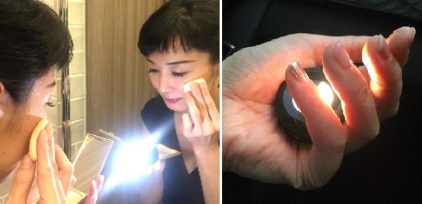 ■特殊シートにより鏡に吸着できます。ライトを持たず、両手でメイクが出来ます。