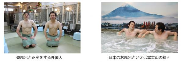 大浴場の床には防水加工された畳を使用。お風呂で畳を体験できることが外国人のお客様に好評です。また、ソフトで温かく滑りにくいことから高齢のお客様も安全にお風呂を満喫できます。