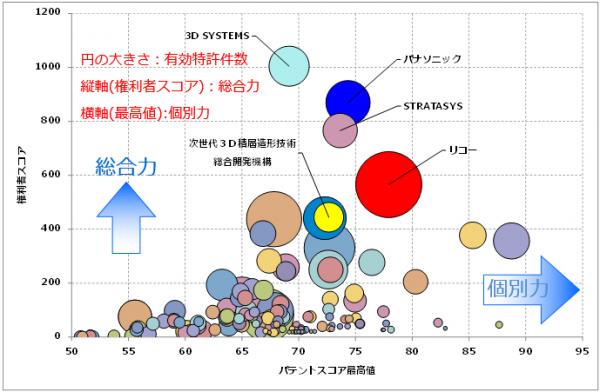 3Dプリンタ関連技術 特許総合力ランキングトップ3は3D SYSTEM、パナソニック、STRATASYS、4位 リコーが躍進