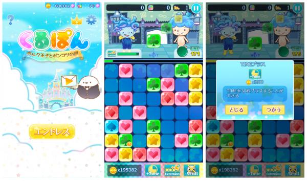 『くるぽん ポルク王子とポンコツの国』は、docomoのスゴ得コンテンツで公開され人気を博したパズルゲームで、今回のアプリ版のリリースにあたりエンドレスモードに新たに時間要素が追加されるなど、戦略性ややりごたえがアップしました。