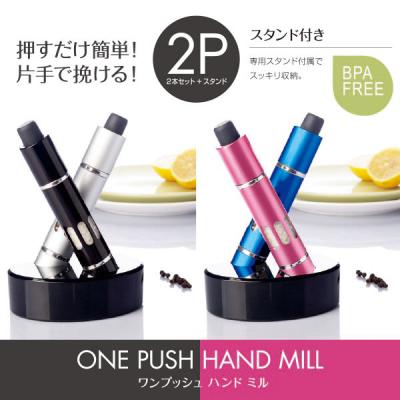 こだわりの調味料が簡単に挽ける! 片手で押すだけで簡単に調味料が挽ける『ワンプッシュハンドミル 2P』を2019年2月28日(木)に発売開始しました。