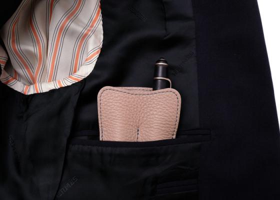 ジャケットにも似合う上質な本革製で、ジャケット生地を傷めずにペンを待ち運べます。