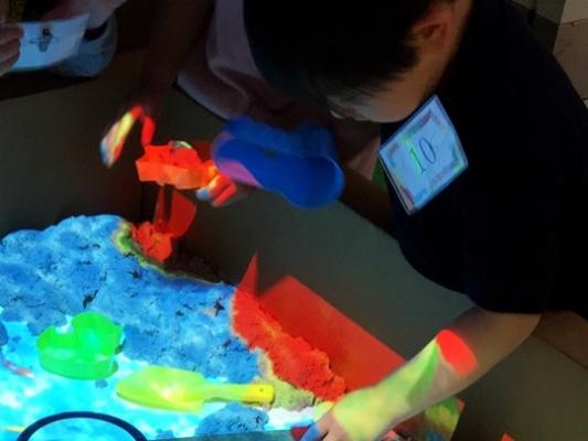 イベント当日は、多くの子どもたちが参加し、形状によって変化する色を楽しんだり、地形に応じて出現するさまざまな生き物を探すなど会場がおおいに賑わいました。