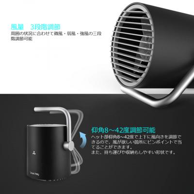 デスクなどの卓上で使用。パソコンの熱対策、快適な睡眠と3段階風速で様々なシーンに対応します。コンパクトながら確かな風量。