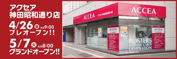 オンデマンド印刷業を展開する株式会社アクセア(本社:東京都千代田区、代表取締役社長:吉田忠司、以下アクセア)が、『アクセア神田昭和通り店』を2019年5月7日(火)にオープンいたします。また、ゴールデンウィーク前の4月26日(金)にはプレオープンを行う予定です。