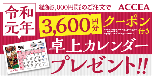 税込5,000円以上ご注文のお客様に、お得なクーポン付の令和卓上カレンダーをプレゼントいたします。