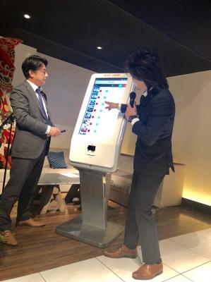 会場にはキオスクと呼ばれる、タッチパネル式の大型モニターも設置され、仮想通貨の売買、店舗商品の購入、決済までの仕組みを実演してみせた。