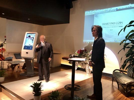 事業説明会には、アプリの開発会社である株式会社smartfaceの取締役会長であり、元防衛大臣の久間章生が挨拶を務め、今後の仮想通貨における支払いをスマートにしたいと述べ、システムについては取締役専務の本多利也が「取引所を介すことで、全ての仮想通貨で支払い可能にする」と語る。