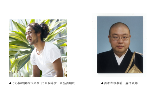 また、世界各国を旅し、様々な植物を収集し多くの人へ届けてきた西畠清順氏(そら植物園株式会社 代表取締役)により、お釈迦さまのご誕生を千本のカーネーションと仏の印相のような奇跡的な形をした樹木を用いて奉祝していただきます。最後には、清水寺執事補である森清顕師と西畠氏による『お釈迦さま誕生の秘密』をテーマとした対談も予定されています。普段絶対に見ることができない夜の清水寺で自然を五感で感じ、お釈迦さまの誕生を通して「お釈迦様をはじめ、全ての人は母から生まれる」ということをあらためて認識、感謝するきっかけとして、ぜひご参加ください。