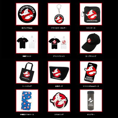 商品は全部で11種類。キーホルダーやモバイルグッズ、Tシャツやキャップのアパレルグッズまで!ゴーストバスターズのロゴが大きくデザインされた可愛いラインナップが大充実!もちろん全品390円(税別)。サンキューマートだけの限定商品です♪