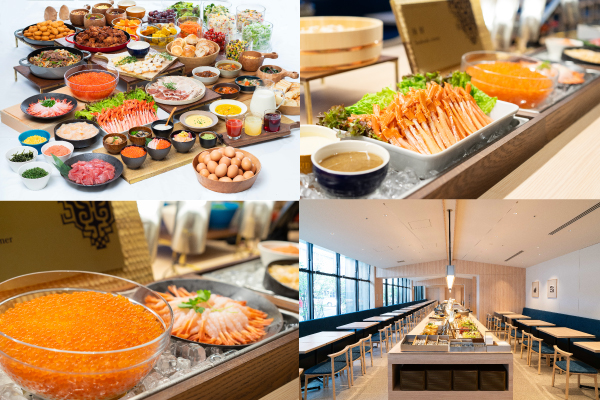 朝食には、「感じる朝ごはん_北海道」をテーマに、蟹やイクラなどの海鮮や野菜、チーズなど北海道ならではの味わいを堪能できる多彩なメニューをご提供いたします。北の大地が育んだ恵みの数々を心ゆくまでお楽しみください。