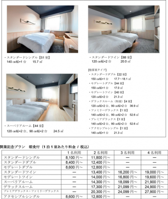 2階から13階の客室フロアには、15.7m2から52.6m2まで10タイプ296室の客室を設けております。全室禁煙の客室では、靴を脱いでお過ごしいただけるスタイルで、自宅のようにおくつろぎいただき、ホテルにいながら和の趣を感じていただけます。全室に高反発マットレス「エアウィーヴ」を採用し、加湿機能付き空気清浄機を完備。100タイトルの映画をお楽しみいただけるVODシアターやWi-Fiなど無料でご利用いただけます。ホテル内でご利用いただける館内着、雪駄、足袋タイプの靴下をご用意しています。
