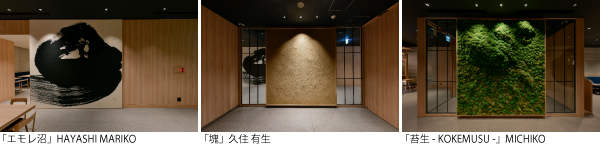 地元・札幌の土を素材に、根源的な力強さを表現した左官職人、久住有生氏による「塊」。海に生えている苔玉を乾燥させ、苔に時の重なりを表したフラワーアーティスト、MICHIKO氏による「苔生 -KOKEMUSU-」。イサム・ノグチ氏が手がけた公園を表現した壁画家、HAYASHI MARIKO氏による「モエレ沼」をはじめ、当ホテルのために制作されたアート作品を館内や客室に展示しています。