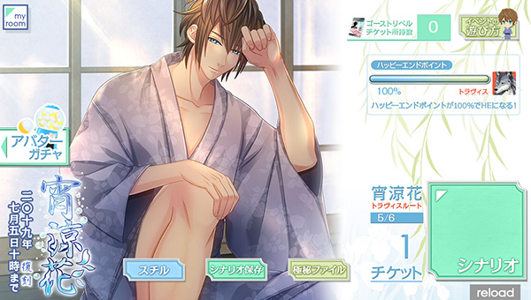 「宵涼花」イベント期間中に、限定アバターガチャ「過ぎ越し幽境」ガチャがプレイできます。