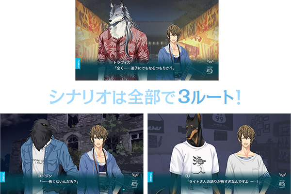 イベントはトラヴィスルート、ユージンルート、BJルートの3本あり、好きなルートを選んで進めていきます。