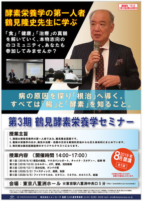 「酵素栄養学の第一人者 鶴見先生に学ぶ」 第3期 鶴見酵素栄養学セミナーが開講します。