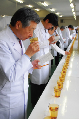 ※写真は、酒質の審査をする石川雄章さん(一番手前)。写真提供:岩手日日新聞社(2008年4月)