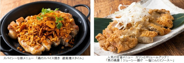 また、「くいもの屋 わん」で定番人気メニューの第2位でもある「男の鶏唐!ジューシー揚げ」は、塩にんにくソース、南蛮風香醋タルタルの2品ともボリュームアップして、食べ応え満点の商品になりました。
