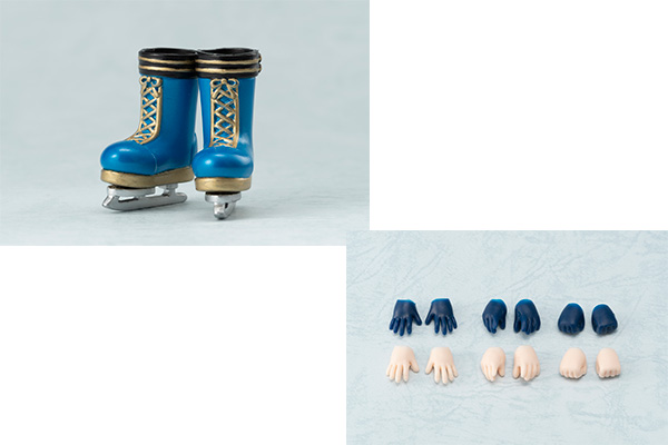 着せ替えも楽しんでいただけるよう、手袋をイメージした青いハンドパーツの他に、肌色のハンドパーツも付属します。