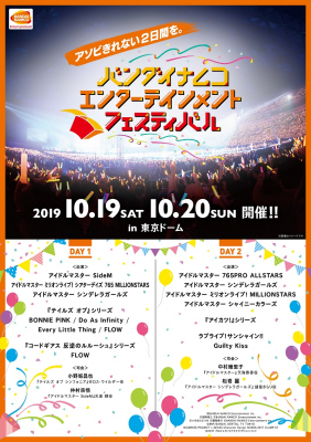 当社初のIPの垣根を超えたエンターテインメントライブ 「バンダイナムコエンターテインメントフェスティバル」開催 〜10月19日・20日に東京ドームで「アソビきれない2日間を。」実現〜