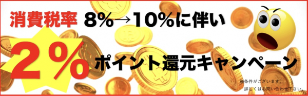 現在8%から10%へとアップする2%分を次店舗の工事費用へとお使い頂けるポイント還元サービスを