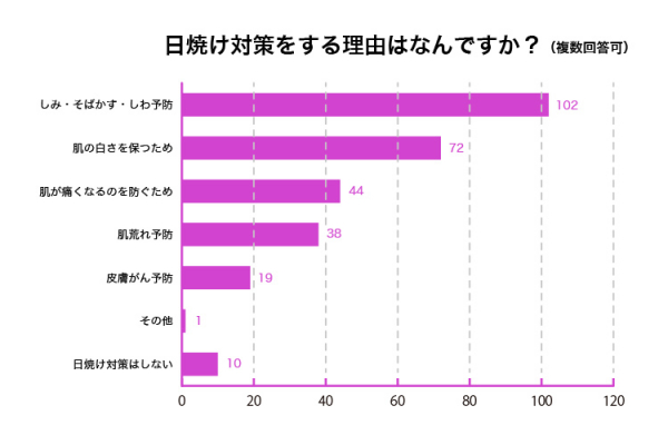 第一位は「しみ・そばかす・しわ予防」。肌への将来的な影響を気にされる方が多いようです。