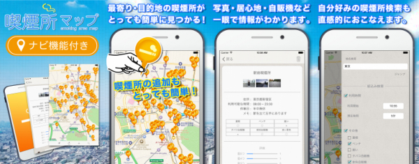 そこで喫煙所に限定し情報を集めGPSを利用し地図上で現在地から近い情報を一目でわかるようにしました。