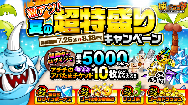 『城とドラゴン』「激アツ!夏の超特盛りキャンペーン」が7月26日(金)より開催! 超豪華ログインボーナス&イベント多数!