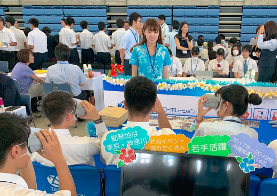 物流サービスを提供する株式会社ダイワコーポレーション(所在地:東京都品川区、代表取締役社長:曽根 和光)は、7月11日(木)に沖縄コンベンションセンター(沖縄県宜野湾市)で行われた沖縄県で最も大きな就活イベントである「令和2年3月新規高卒予定者 県内・県外合同企業説明会」にてVR(バーチャルリアリティ)ゴーグルを使って企業説明を行い、自社ブースに前年比2倍の学生が参加しました。
