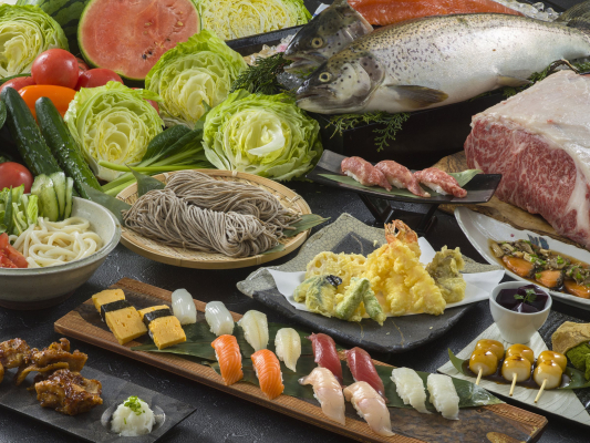 日本料理の定番、「握り鮨」や天ぷらをはじめ、新鮮なサラダで味わう“長野県産野菜”や、「信州サーモン」に「信州味噌」など、信州の味覚を集めました。さらに、8月10日(土)〜8月18日(日)は通常メニューに加え「本マグロ味くらべ(鮨3カン)」を大人一人1皿ご提供いたします。この機会にぜひご賞味ください。