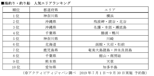 株式会社アクティビティジャパン『2019年海釣り・釣り船ランキング最新版』を発表
