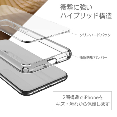 スリキズに強いハード素材のバックカバーと側面の衝撃吸収バンパーでiPhoneをキズや衝撃から