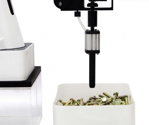 TechShareが開発を進めるシステムは、自社開発のDOBOT Magician用3DロボットビジョンシステムDoVision3を使ってバラ積みされたボルトから、ピックアップするボルトを検知し、1本ずつピックアップするシステムです。