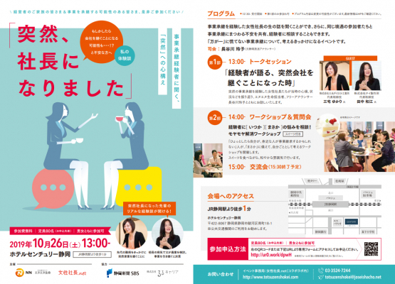 静岡で家業に携わる女性に向けた「突然の事業承継」啓発イベント 「突然、社長になりました 〜 事業承継経験者に聞く、承継の心構え 〜」を開催