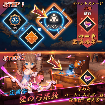 ハートエネルギーはイベント限定錬金台で錬金することで、限定武器が入手できます。