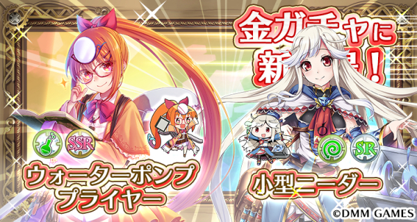 アトリエ(緑)属性SSR「ウォーターポンププライヤー【アトリエ】」、撹拌(緑)属性SR「小型ニーダー」が金ガチャに復刻!