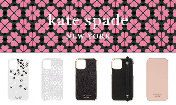 全体に散りばめられた花にさりげなくストーンをあしらった、大人の雰囲気と可愛らしさを表現したハイブリッドケースや上品な仕上げを施したプレミアムPUレザーにkate spadeの立体ロゴを配した洗練された大人の女性を演出するフォリオケース、ケース背面には落下防止用のバンドがついた上品な仕上げを施したプレミアムPUレザー製のシェルケースなど、