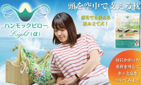 株式会社エムアイストーリーは、頭を空中で支える枕「ハンモックピロー」をコンパクトにして、旅先にも持ち運べる組立式を開発しました(特許取得済)。