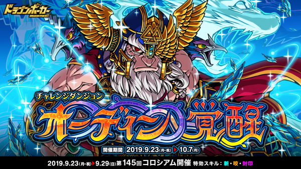 株式会社アソビズム(本社:東京都千代田区、代表取締役:大手智之)は、App Store・Google Playにて好評配信中のリアルタイム合体カードバトル『ドラゴンポーカー』で、2019年9月23日(月・祝)より 復刻チャレンジダンジョン「オーディン覚醒」を開催いたします。
