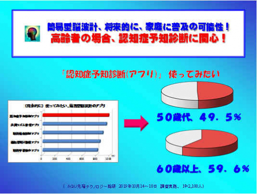 簡易型脳波計、将来的に家庭に普及の可能性! 高齢者の場合、認知症予知診断に関心! 2,100人意識調査、AQU先端テクノロジー総研
