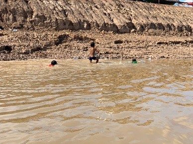 子ども達が湖で遊んでいる様子