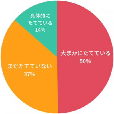 冬休みの学習計画を立てているかという質問で、「大まかにたてている」が50%、「まだたてていない」が37%、「具体的にたてている」が14%という回答が得られました。