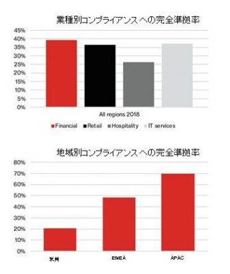 ● 米州において5社中1企業・機関が完全なコンプライアンスを維持しており、アジアパシフィックの企業の多くがコンプライアンスを遵守