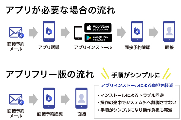 アプリフリー版の提供を開始したことにより、応募者は専用アプリのインストールを行うことなく、WEB面接を実施できるようになりました。これにより応募者のアプリインストールの負担や抵抗感を軽減することとなり、面接実施率の一層の向上が期待できます。