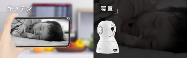 別室からのあかちゃんの見守り、留守番中の子どもやペットの見守り、遠く離れた家族の見守りや防犯対策として、スマートフォンから簡単にいつでも、どこからでも様子を確認することができます。