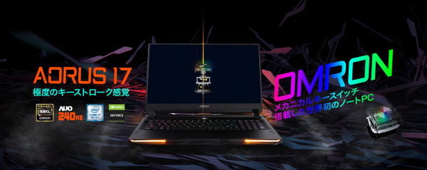 GIGABYTE、世界初、オムロン製メカニカルキースイッチ採用17インチノートPC「AUROS 17シリーズ」3製品を発売