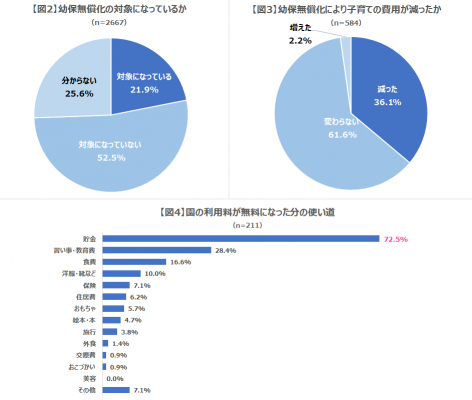 ・幼児教育・保育無償化の対象者で、子育てにかかる費用が減った人の約7割は、減った分を「貯金」
